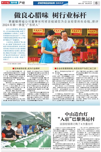 黄圃镇得福公司董事长何祥吉视诚信为企业经营的生命线,获评2024年第一季度“广东好人”