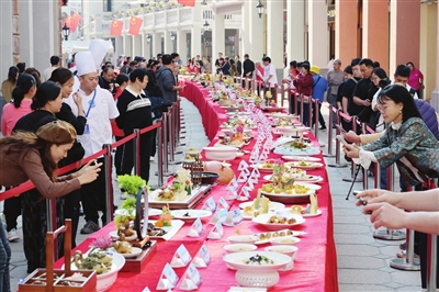 图为参加粤菜师傅比赛的粤菜作品在孙文西路步行街展示。