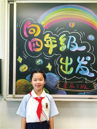 这个学期,她的“身份”更丰富了:除了大课间的文明监督员,还当上了升国旗的主持人。“站在国旗下对着全校同学讲话时,风一吹,红领巾飘起来,感觉特别光荣!”林熙瑜笑着说。
