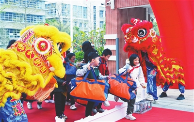 2月13日是开学首日,中山近80万名幼儿园、中小学学生返校。市内各学校纷纷举行热闹的开学活动,并结合热点话题开讲第一课,鼓励学子们奋发向上、勇敢追梦。图为中山市香山小学组织欢快喜庆的醒狮欢迎同学们归来。