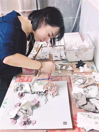 岐江河畔,推门走入一家名为景陶定制创意的工作室,宽敞明亮的大厅里,满当当地摆放着各式陶艺作品。而这个工作室的负责人,正是“90后”周晓婷。