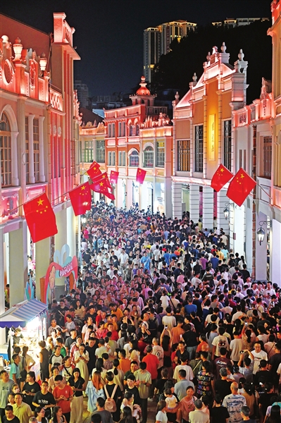 焕新开放的孙文西路步行街吸引大批市民游客前来“打卡”。图为国庆假期第一天晚上,步行街上人潮涌动。 本报记者 夏升权 余兆宇 摄