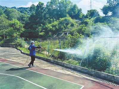 在攻坚行动中,有人手持扫帚、夹子,穿梭在公共绿化带与背街小巷,细致清理卫生死角。有人带着防蚊宣传册,逐楼入户或在小区叮嘱居民做好居家防蚊,顺手帮居民翻盆倒罐清除阳台、窗台的积水容器;经过专业培训的工作人员则背着消杀设备,对公共区域重点喷洒药剂,从源头上阻断蚊虫孳生路径。