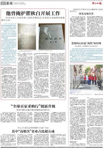 国内统一刊号:CN44-0126 代号:45-47 中山日报社出版 Email:zsrbnews@163.com