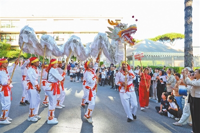 当日,一场别开生面的中秋主题游园会和文艺演出在意大利罗马马里蒙特国际学校举行。武术、拓印、投壶、包饺子等多个游园项目吸引了众多学生和家长参与体验。随后,在校师生与中华文化爱好者同台演出,以诗会友,共庆佳节。