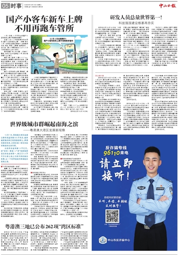 国内统一刊号:CN44-0126 代号:45-47 中山日报社出版 Email:zsrbnews@163.com