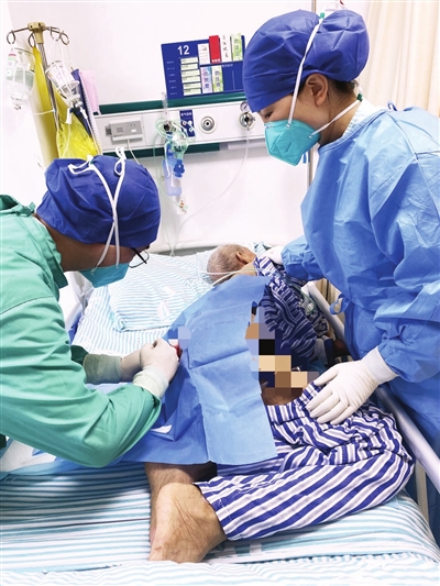 在第一阶段的治疗过程中,医护团队为叶奶奶提供全身支持与彻底清创等治疗工作。