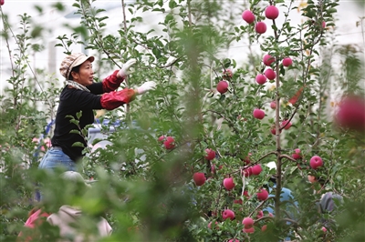 近年来,礼县多措并举推动苹果产业提质升级,通过建设标准化果园、培育龙头加工企业、发展电商直播等多种方式,打造苹果种植、收购、储存、加工、销售、电商于一体的全产业链,预计2025年全县苹果总产量将突破60万吨,全产业链总产值可达50亿元,一颗苹果“链”出的特色产业为乡村振兴注入强劲动力。新华社 发