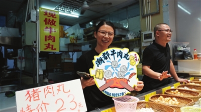 “我采用的元素是市面上常见的水果,比如苹果香蕉这些大家经常会买的,还有一些当季热门水果,比如西瓜菠萝之类。”同样来自艺术设计学院的大三学生赖佳怡正为水果店画招牌,她选用了明亮的色彩搭配和可爱的画风,画面活泼有趣,她说,希望以此帮助水果店吸引更多顾客。招牌送到朋友圈超市的老板邱先生手里时,他眼前一亮:“这很贴合我们的水果区域,我很喜欢。”