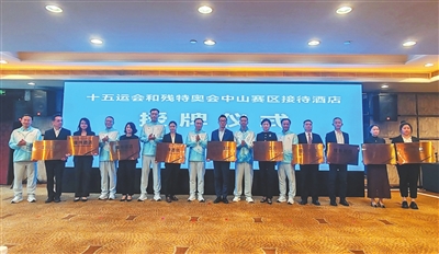 接待酒店授牌工作践行“绿色、共享、开放、廉洁”办赛理念,目前市执委会设置了专门的行政接待部门与各方进行精准对接,并制定了专门的接待方案,后续工作将按照方案逐步推进。