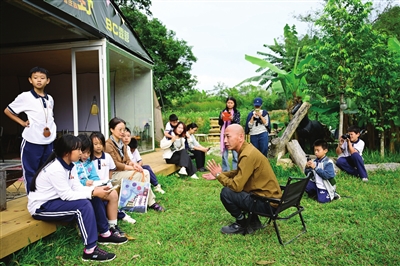 11月11日下午,一群刚从桂南学校放学的孩子在几位家长的带领下,来到了“旗溪自然而然艺术节”发起者阿若的家中开展第一次社区调研,当天下午他们要访问6个“新村民”。“请问你们来到桂南村多少年了?为什么喜欢这里?你觉得这个社区还需要什么?明年你想为社区做什么?……”面对孩子们抛出的一个个问题,阿若认真回答。这是由杨涛等家长组织的活动,旨在让这些孩子多了解村庄和村民。