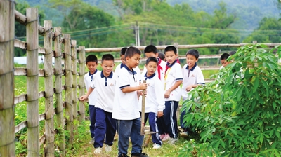 11月3日下午3时左右,石磊带着记者穿过热闹的操场,来到学校的菜地。只见远处青山起伏,近处蔬菜郁郁葱葱,五年级三班的学生正在上劳动课。几个男孩拿着锄头松土,突然发现了青蛙,兴奋地蹲下身观察。孩子们叽叽喳喳,快乐而放松。来自重庆的吴天慧说,她很喜欢劳动课,有一次她炒了菜,用的就是自己种的青菜,感觉味道特别好。