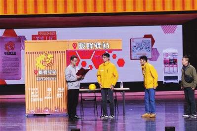 剧中故事源于中山的真实场景:美团骑手汤育彬、黄家文在配送途中遇见车辆侧翻,毫不犹豫停车救援。这“顺手”的善举,经媒体报道后感动了无数人。舞台上,源于现实的“随手拍”参与治理、暖蜂驿站获得服务等细节,生动诠释了新就业群体与城市之间深刻的“双向奔赴”与“情感共鸣”。