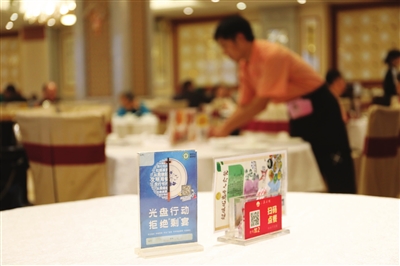 除了半例菜,每张桌上“公筷公勺,文明‘食’尚”的标语也十分醒目。该酒楼总经理黎晓峰介绍,酒楼按桌型配备公筷,包厢更做到人手一套。“港澳客人习惯用公筷,我们本地客人的观念也在变,主动打包、按需点餐,越来越普遍。”