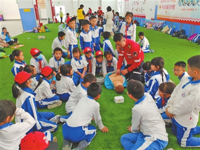 12月5日,南朗街道榄边小学300余名师生到广东鑫轩电子科技有限公司应急消防科普研学基地开展秋冬季研学活动。学生们在应急消防科普研学基地,了解火灾的成因、预防措施以及火灾发生时的正确应对方法等消防知识和应急处理技巧,并在互动体验区,体验了模拟火灾现场,参与心肺复苏、烟雾逃生和绑担架等实操项目。本报记者 谭华健 摄影报道