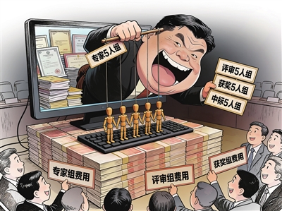 普通人眼中严格的程序,在他们看来只不过是遮羞布,是利益交换的工具。他们心里以为,只要程序看似合规,给出的名单不显眼,便无人来问,无人来查。于是,这“最强五人组”便成了他们手里的提线木偶,占尽了各类评审、比赛的名额。如此操作,让我等小民不禁目眩神迷,只得感叹:墙都不扶,只服这“最强五人组”。