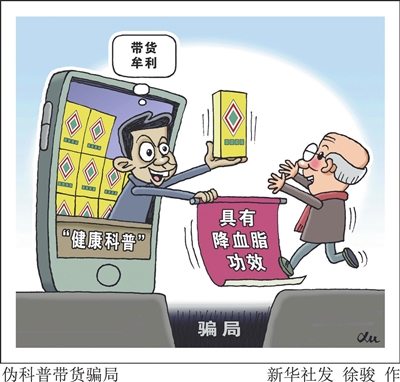 不久前,安徽省淮南市中级人民法院二审宣判了一起诈骗案,诈骗团伙通过开设短视频账号,虚构“国家一级保健医师”“国家一级营养师”等多个头衔,将团队成员迟某军包装为专家,在直播间进行健康科普。实际上,迟某军只有高中文化,他以科普之名对老年人进行推销诈骗,将成本18元的胶囊以499元价格卖出,并虚假宣传为具有降血脂功效。