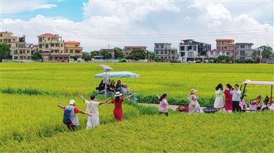 “百千万工程”实施以来,桂南村以乡村艺术、研学美育为特色破局,通过“筑巢引凤”激活发展动能。依托“旗溪创谷”等创业平台,村里吸引了50余名生态农业、文化教育领域的高知“新农人”扎根,落地生态农业、自然教育等农文旅项目数十个。精品民宿集群蓬勃兴起,其中“悦茂粮缘”获评广东省乡村民宿示范点;咖啡店、艺术工坊与稻田音乐节、香草生活节等特色活动相得益彰,更让客家文化与非遗艺术在体验中焕发新生。