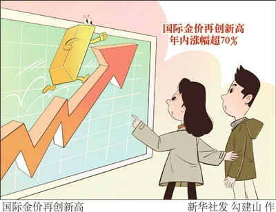 受地缘政治紧张局势加剧、市场供需紧张及避险需求推动,国际市场黄金期货和现货价格12月23日均创历史新高。今年以来,国际金价累计涨幅已超过70%。新华社 发