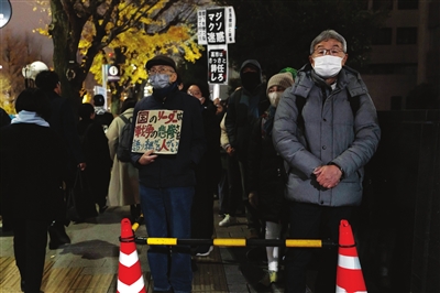 集会现场,抗议者高喊“维护宪法”“不要煽动战争”等口号。日本社民党党首福岛瑞穗在集会上发表演讲,批评政府安保政策的走向。她指出,首相官邸负责安保政策的官员公然谈及“拥核”,动摇了日本长期坚持的“无核三原则”。高市内阁是一个“准备战争的内阁”。防卫预算不断攀升,其走势越来越让人联想到二战前的日本。福岛强烈要求高市撤回涉台错误言论,强调该表态明显违反宪法第九条。