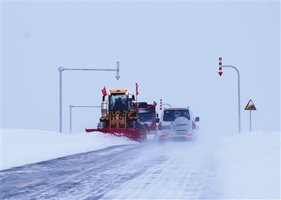 1月13日,新疆阿勒泰公路事业发展中心工作人员驾驶清雪车在辖区公路上除雪。