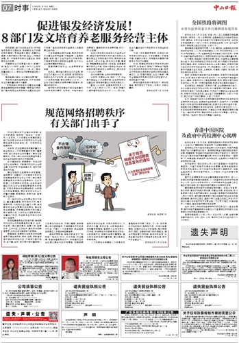 国内统一刊号:CN44-0126 代号:45-47 中山日报社出版 Email:zsrbnews@163.com