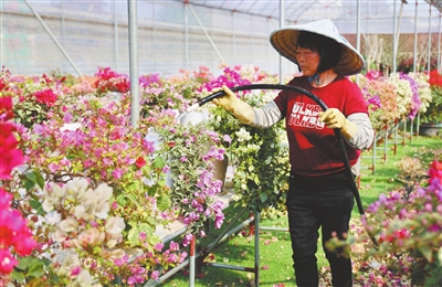 基地旁,发展路道路修复工程热火朝天,压路机轰鸣作响,工人们有条不紊地铺设沥青。“物流通道修好后,大型货车能直接开到大棚门口,花卉采摘到装车最多20分钟,大幅减少运输损耗。”宝裕村党委书记冯洛朝站在规划图前介绍,项目还将新增230个停车位、5座公共厕所和24个垃圾收集设施,“既方便商户运货,也让游客舒心,为‘花木+文旅’筑牢基础。”