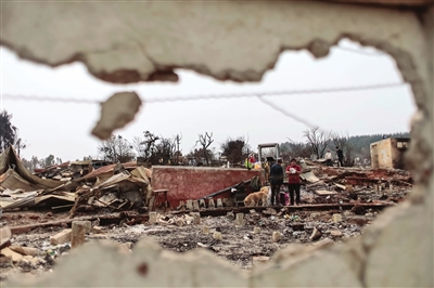 1月19日,当地居民在智利比奥比奥大区彭科市的火灾受灾区域进行清理。智利的比奥比奥大区与纽夫莱大区因严重森林火灾已进入灾难状态。新华社 发