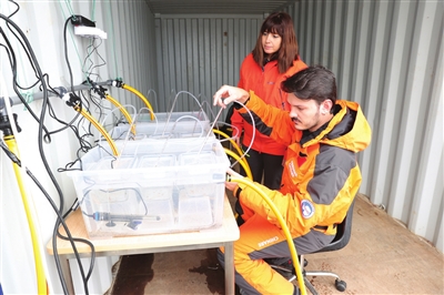 另一组葡萄牙科学家卡约·塞萨尔和塔伊娜·丰塞卡关注南极浮游生物对气候变化的反应。他们告诉记者,长城站的紫外分光光度计、荧光分光光度计等仪器设备对实验很重要,站内稳定的冷冻储藏能力利于保存生物样本。