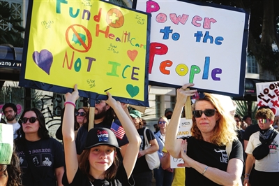 据记者了解,部分洛杉矶周边城市当天也组织了抗议移民和海关执法局暴力执法的活动。