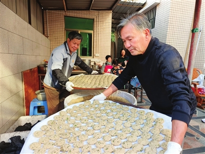 陈秀明的女儿陈小姐在一旁说,今年已经卖出500斤炒米饼。买这些传统食品的都是附近的中老年人、港澳同胞和华侨。特别是上了一定年纪的港澳同胞从这些美食身上找回童年的记忆和对家乡的感情。“他们对曲奇饼等西式点心可能没感觉,但如果看到这些传统美食会特别开心。”她说,做这些传统美食很辛苦,从早忙到晚,但父母觉得有人认可,所以做得很开心。她也会在朋友圈帮父亲卖这些食品,附近的街坊上门取货,远的发快递。从腊月初到月底每天都有订单,每年基本能全部卖出去。