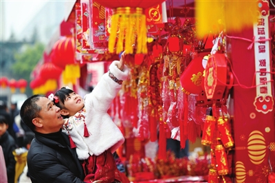 2月3日,家长带着小朋友在贵州省贵阳市筑城广场选购新春饰品。农历马年春节临近,各地张灯结彩、举办喜庆活动;众多企业加紧生产马年装饰品供应市场;市民备年货、赶市集,喜迎新春。新华社 发