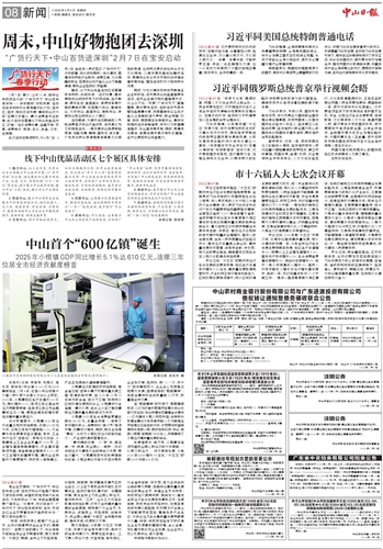 国内统一刊号:CN44-0126 代号:45-47 中山日报社出版 Email:zsrbnews@163.com
