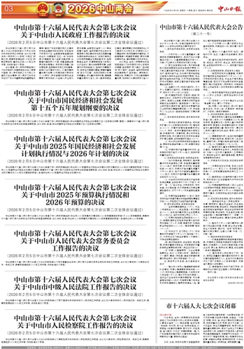 (2026年2月5日中山市第十六届人民代表大会第七次会议第二次全体会议通过)