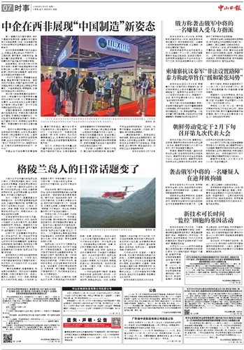 国内统一刊号:CN44-0126 代号:45-47 中山日报社出版 Email:zsrbnews@163.com