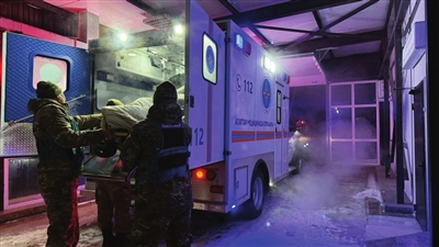 这张哈萨克斯坦紧急情况部提供的照片显示的是,救援人员在哈萨克斯坦阿克莫拉州运送伤者。新华社 发