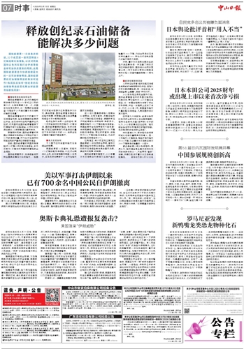 国内统一刊号:CN44-0126 代号:45-47 中山日报社出版 Email:zsrbnews@163.com