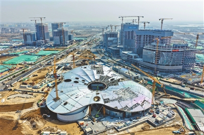 目前,雄安新区启动区城市文化广场项目主体结构已经封顶,正在进行装饰装修、幕墙和机电施工。