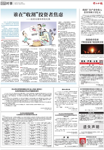 国内统一刊号:CN44-0126 代号:45-47 中山日报社出版 Email:zsrbnews@163.com