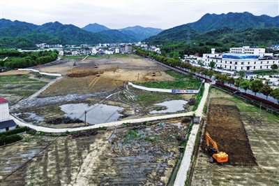 这是4月9日拍摄的同山镇正在建设的白酒产业社区项目(一期)施工现场(无人机照片)。从2026年初开始,浙江省诸暨市同山镇积极推进村级共富项目建设。村社干部扎根一线,聚焦“土特产富”全链发展,推进农文旅共富综合体、康养旅居目的地、特色白酒产业社区等项目建设,推动资源互补、片区共建,既盘活了当地特色资源,又夯实了乡村长远发展根基,助力乡村振兴和百姓共富。新华社 发