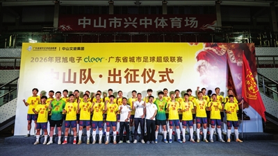 本报讯(记者 闫莹莹)4月15日晚,2026年广东省城市足球超级联赛(以下简称“粤超”)中山代表队出征仪式在兴中体育场举行。副市长周作德出席活动并为球队授旗。