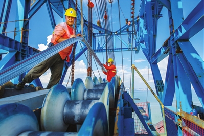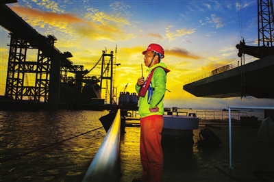 他以时间为轴,捕捉不可复制的施工节点,让钢护筒的沉放、主塔的封顶、沉管的对接,成为历史的永恒注脚;以匠心为尺,定格工程与自然共生的壮美,让霞光与大桥相映、波涛与机械和鸣,书写建筑与天地的诗意对话;以温情为脉,聚焦建设者的脸庞与身影,把汗水、坚守与自豪,藏进每一个朴实的瞬间。