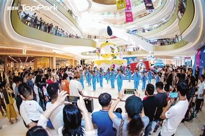 10月5日,记者在富逸城商场一楼中庭看到,蓝白色的巨型史努比展分外吸睛,走进商场的市民纷纷驻足欣赏、拍照打卡,欢声笑语中尽显假日惬意。右侧的华为店内人潮涌动,市民争相选购心仪的手机与电脑。三楼的覔书店内更是座无虚席,购书、阅读的市民络绎不绝。不少深圳游客特意驱车前来,打卡心仪品牌、参与精彩活动,在商场精心布置的国庆主题装饰旁拍照留念,定格假日欢乐时光。