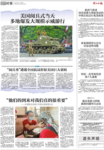 “阅兵秀”遭遇全国抗议折射美国巨大裂痕