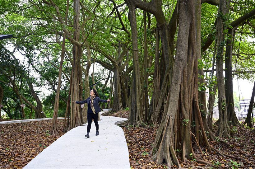 梁国姿走在位于冲口村的南朗街道古树公园内。(摄影|余兆宇)